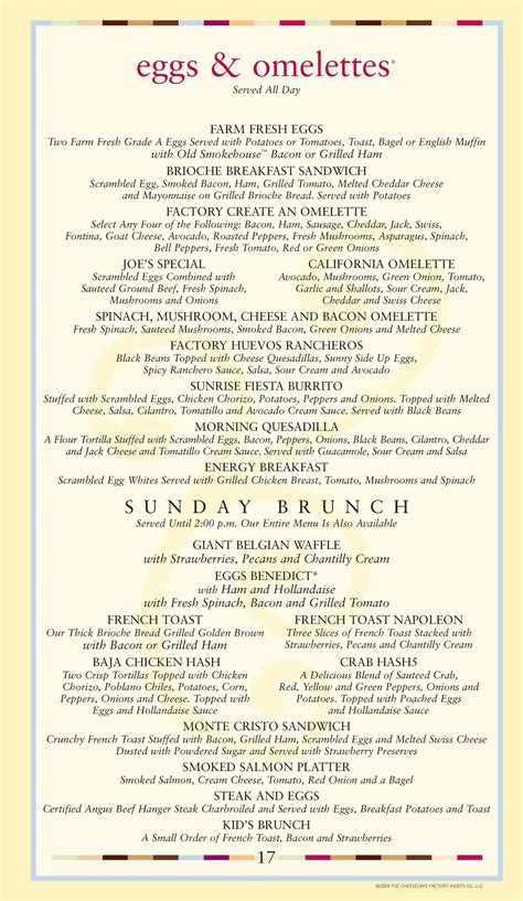 Cheesecake Breakfast Menu. The cheesecake factory breakfast hours time is 11 am to 2 pm every day. Cheesecake factory offers a wide.