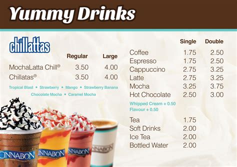 New Menu Board Chillattas Cinnabon Cinnabon, Yummy drinks from www.pinterest.fr